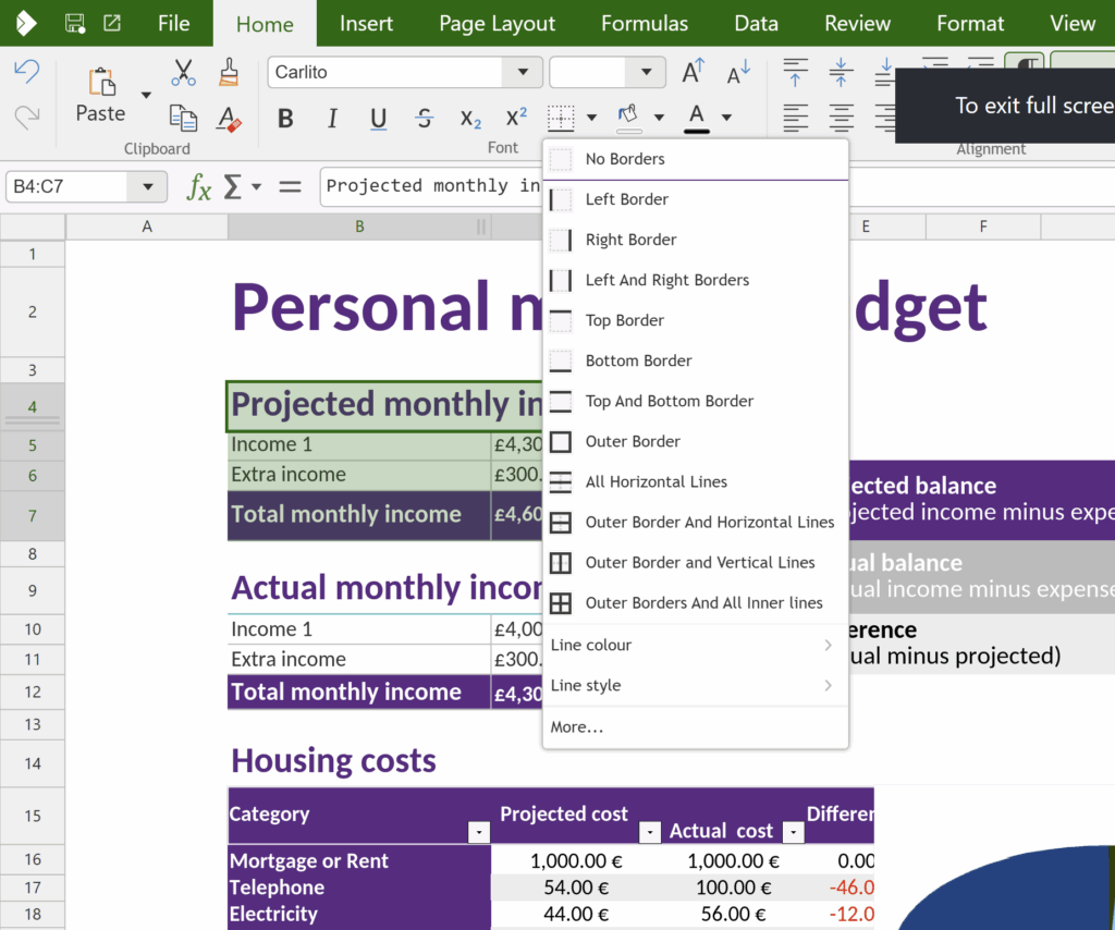 Every preset now has a clear label (e.g. No Borders, Left Border, Top and Bottom Border, Outer Border…). Additionally you can now set Line Colour and Line Style directly from within the widget. All part of our effort to help with discoverability and reduce menu diving.