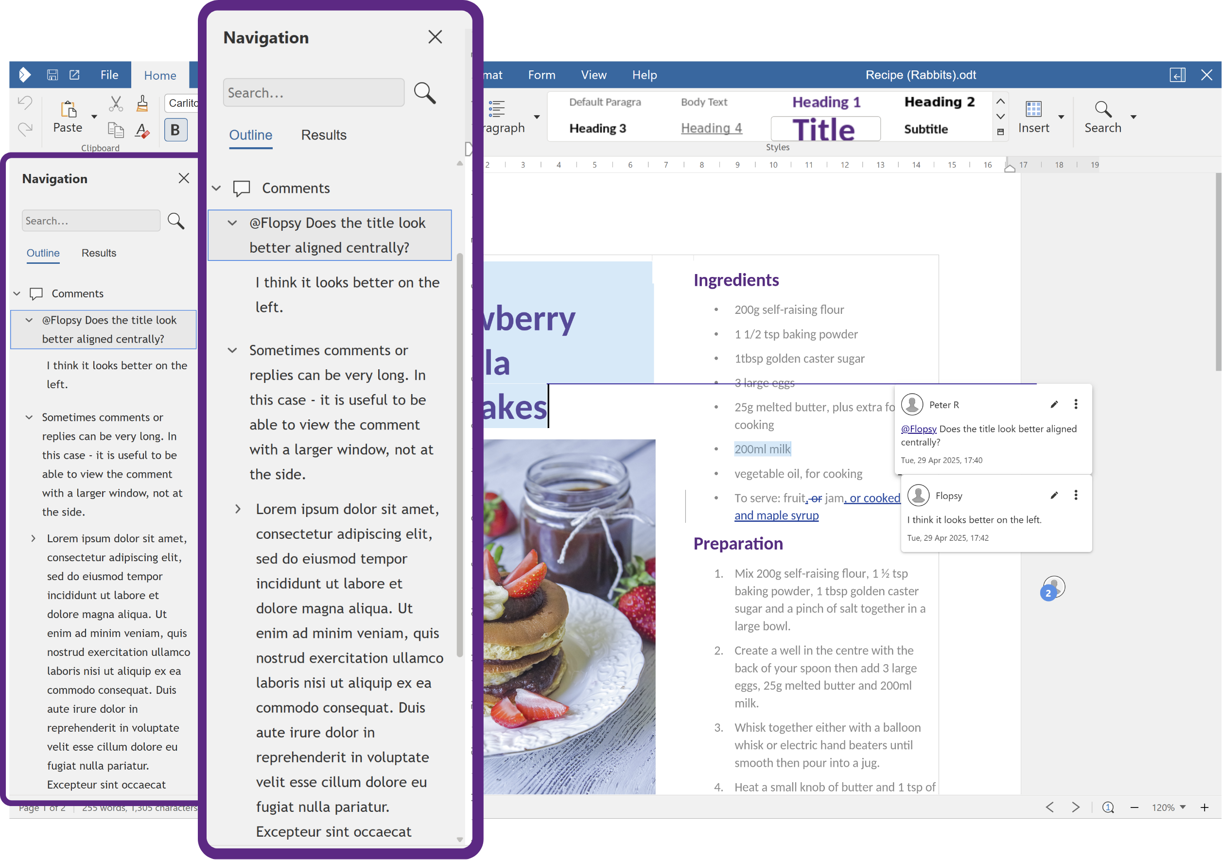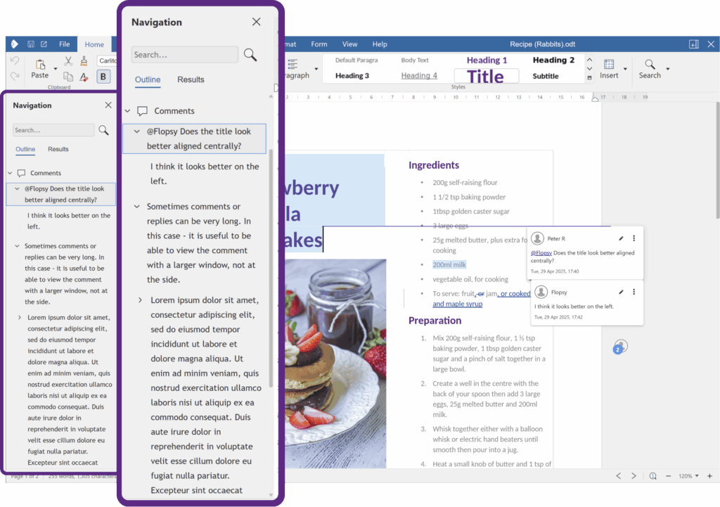 Reviewing long documents just got easier. In Writer, open the Review tab and click Comment – ‘Comments list’ to pop open the Navigation sidebar with its Comments section expanded. You’ll see the text of every comment in order, so you can skim threads at a glance and jump straight to any comment with a single click. No more hunting through pages or scrolling past highlights – pick a comment from the list, and the editor takes you right to its spot in the document.