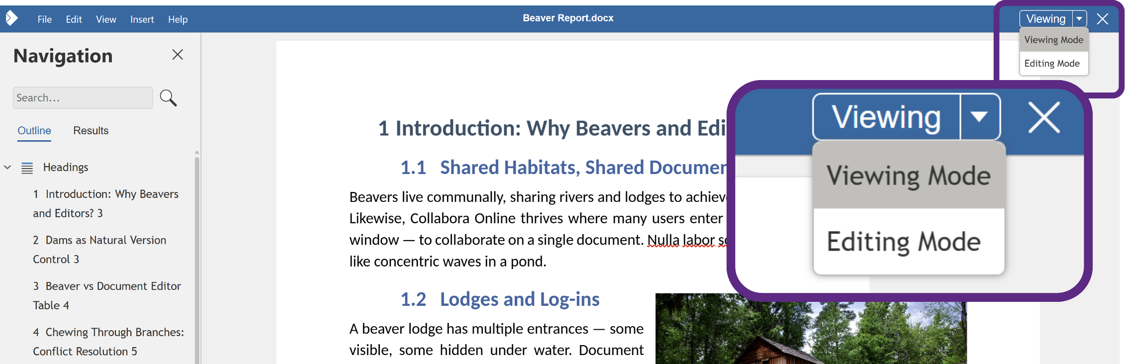 When a document is opened in read-only mode, Collabora Online shows a small but bright Read-only tab in the top-right corner. It’s intentionally unobtrusive but crystal-clear, so people immediately understand why they can’t edit instead of wondering if something’s broken. With a simple drop down beside the tab, it’s easy to switch between read-only and editing modes.