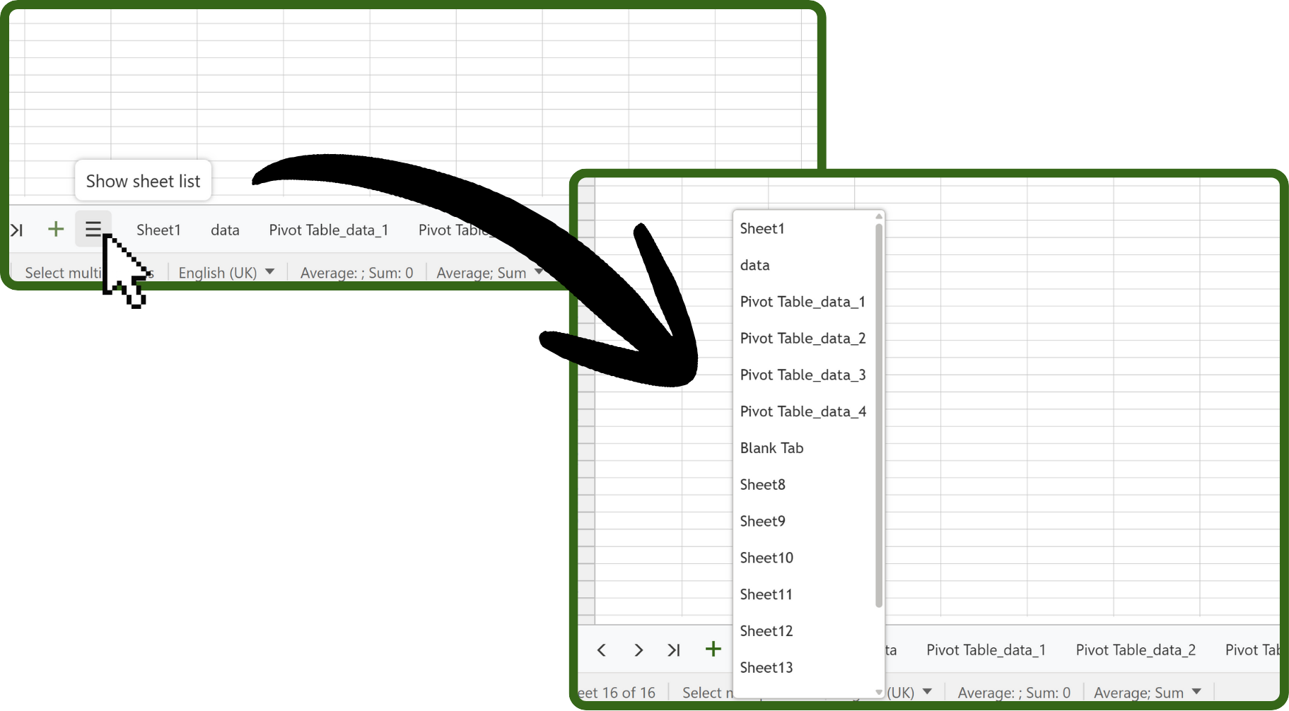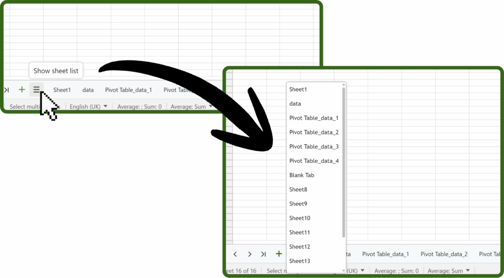 We all have that one spreadsheet with far too many sheet tabs at the bottom. This quick fix lists all your tabs in a simple drop-down (drop-up?) tab list to make finding the right tab quicker and simpler!