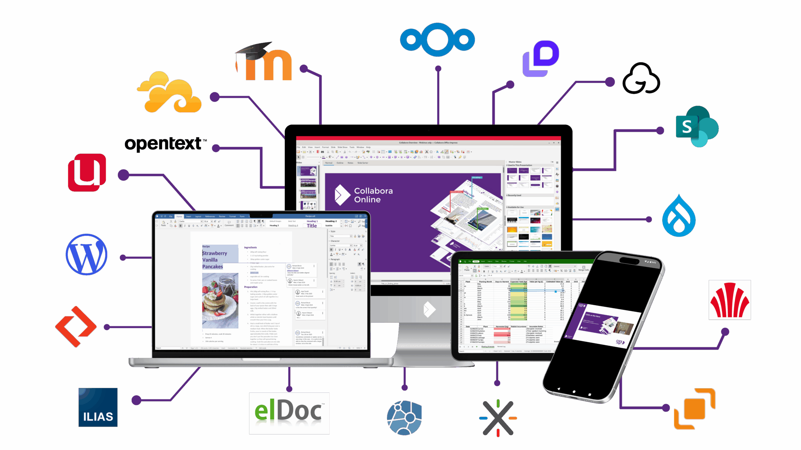 Collabora Online is an Open Source document editor, designed to be easily integrated into a multitude of solutions. Whether you are sending emails, storing files, empowering education or streamlining business applications, if your product wants documents, you need Collabora Online.