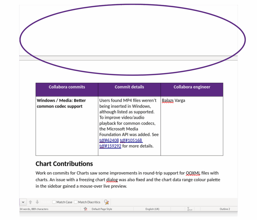 Better handling of Floating Tables – Tables are better behaved! Previously, Writer prioritised keeping tables and headers together, which meant they could both slide onto the next page if there wasn’t enough space left on the page. Sometimes this disrupted document flow, creating a large gap on the previous page, but this is now fixed. Read how it was fixed on Miklos Vajna’s blog.