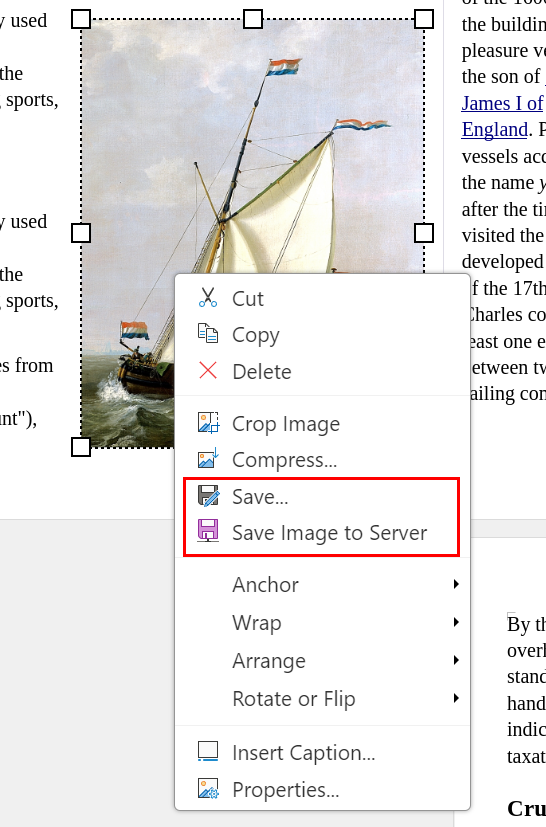 Previously, there was no way to save or download images from documents in Collabora Online. The desktop version (Collabora Office Classic) had a “Save…” option in the image context menu, but this relied on a native file dialog that doesn’t exist in the browser.