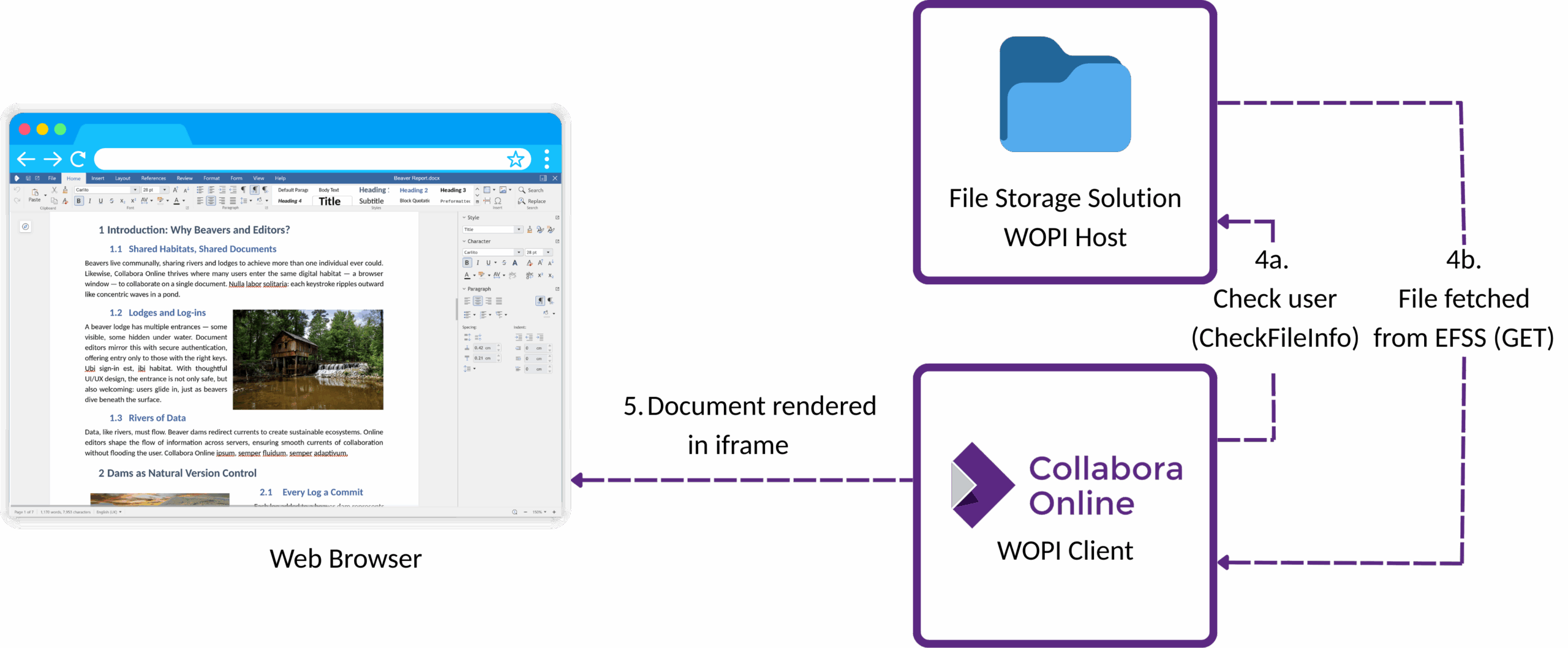 WOPI abstracts document storage from editing applications and defines standardised ways for incorporating: