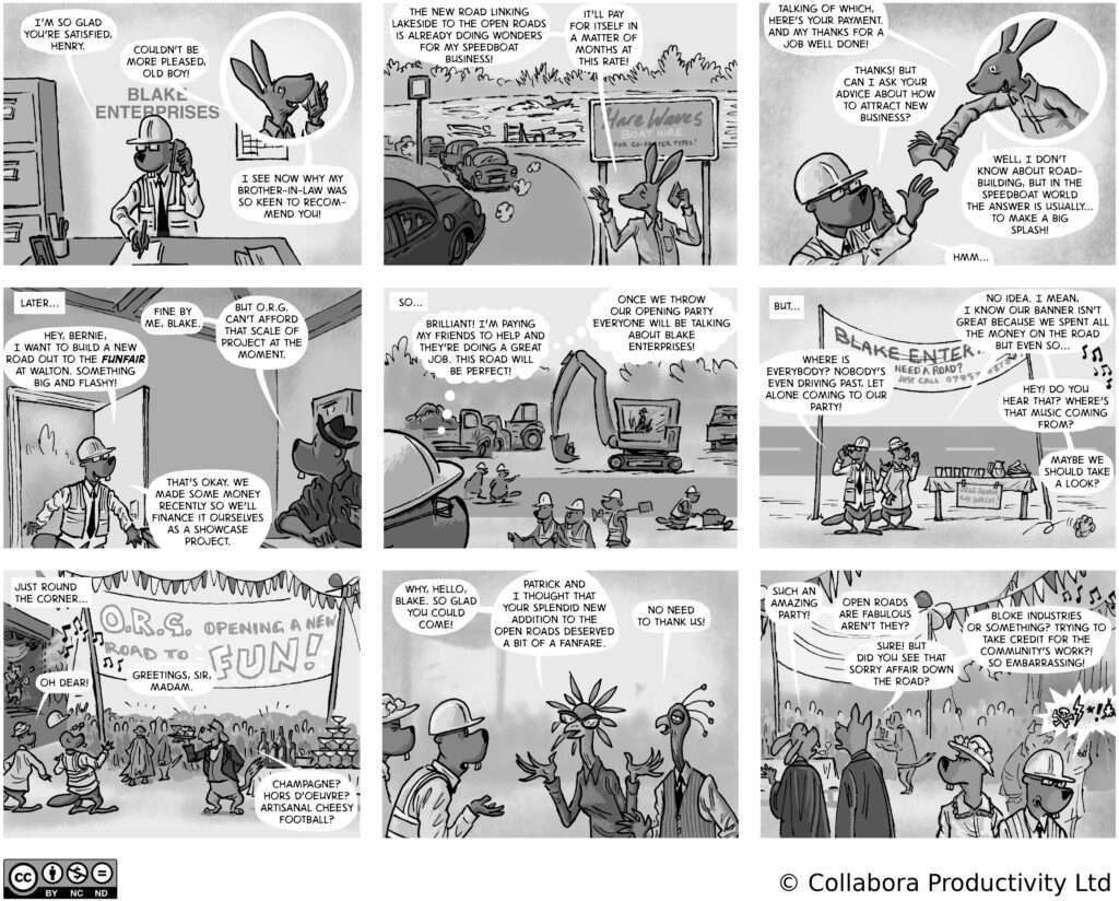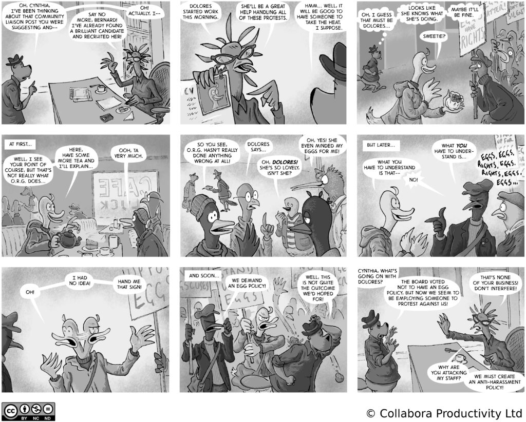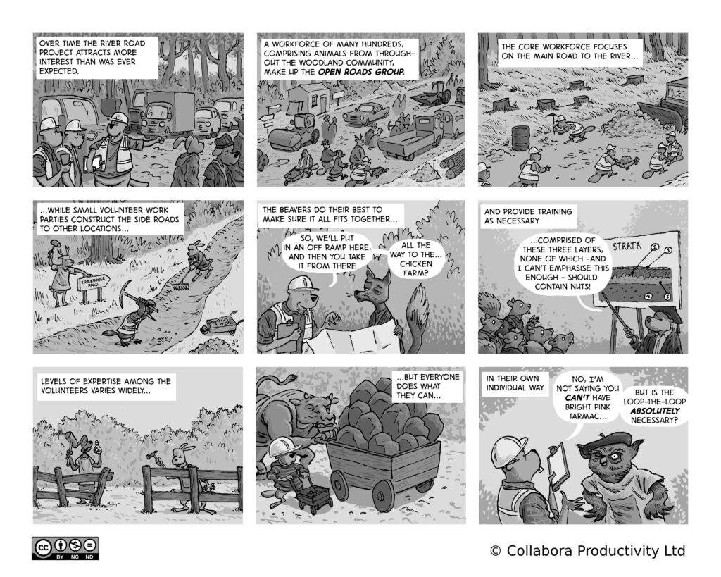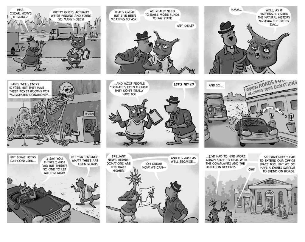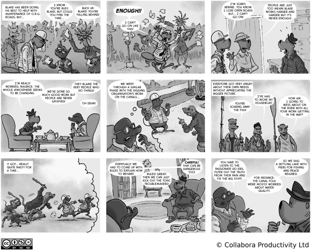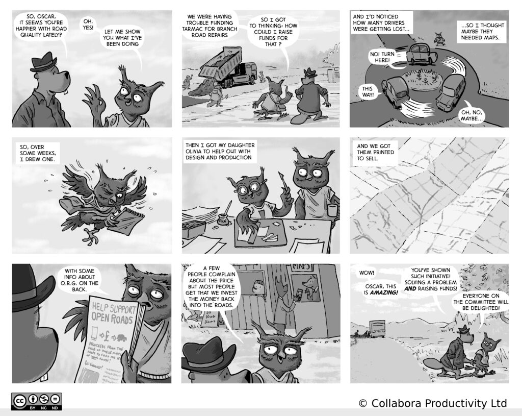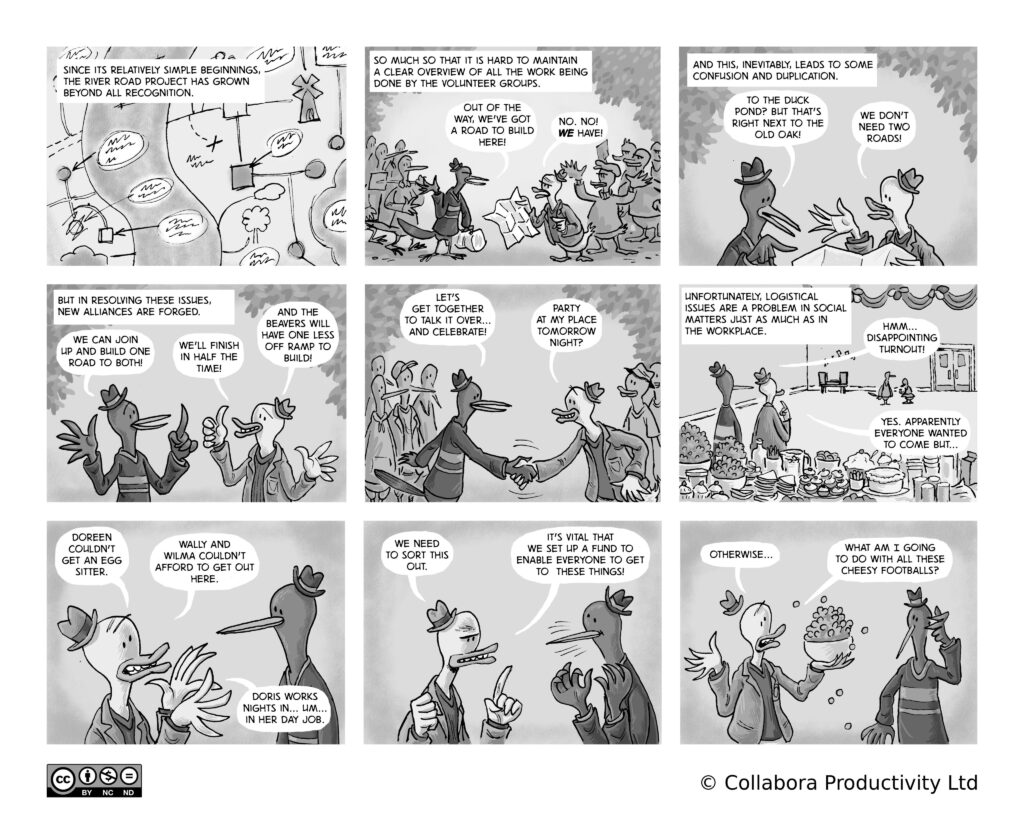 A comic strip about communities, software and companies