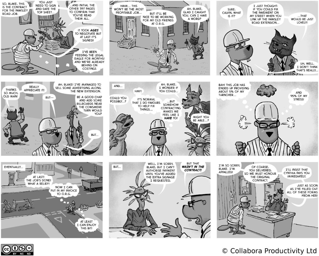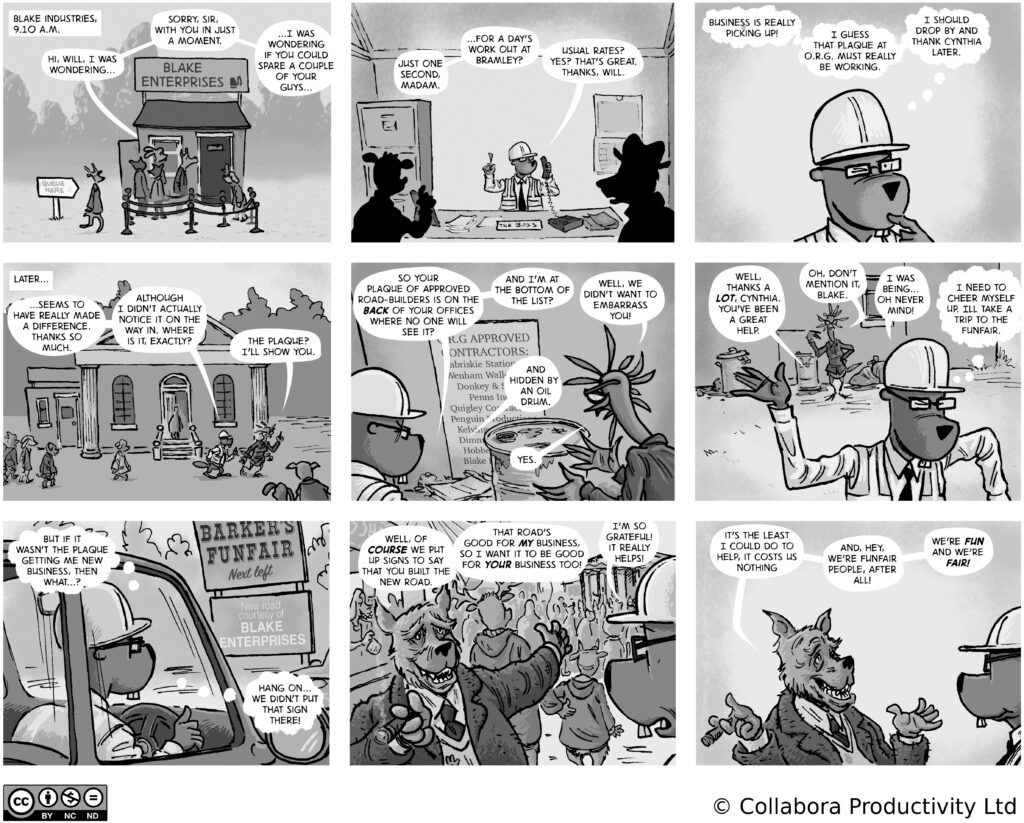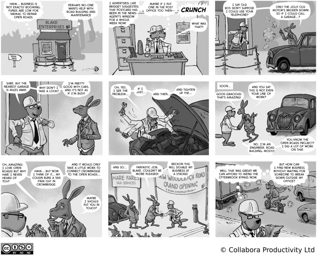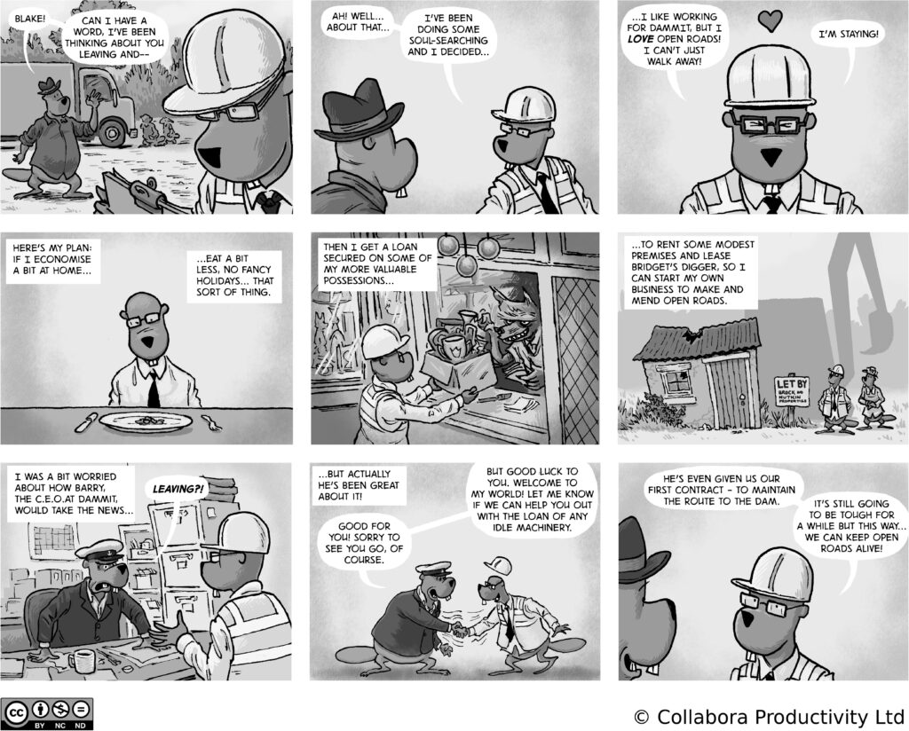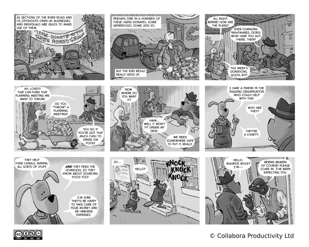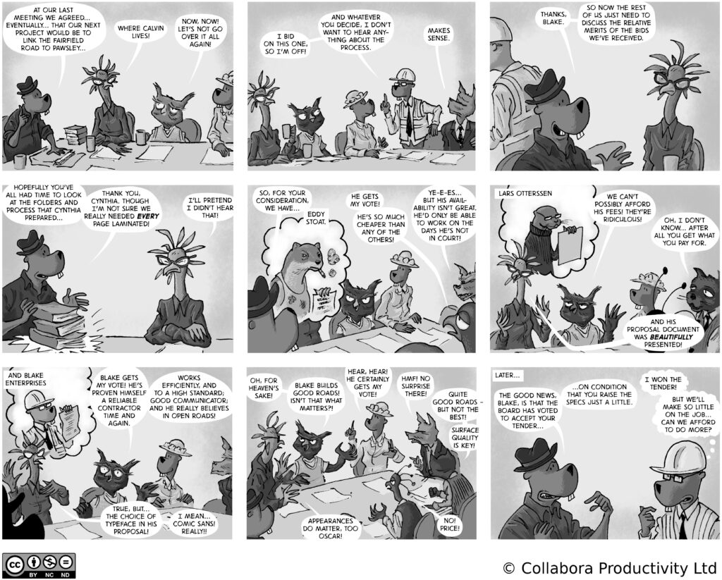 A comic strip about communities, software and companies