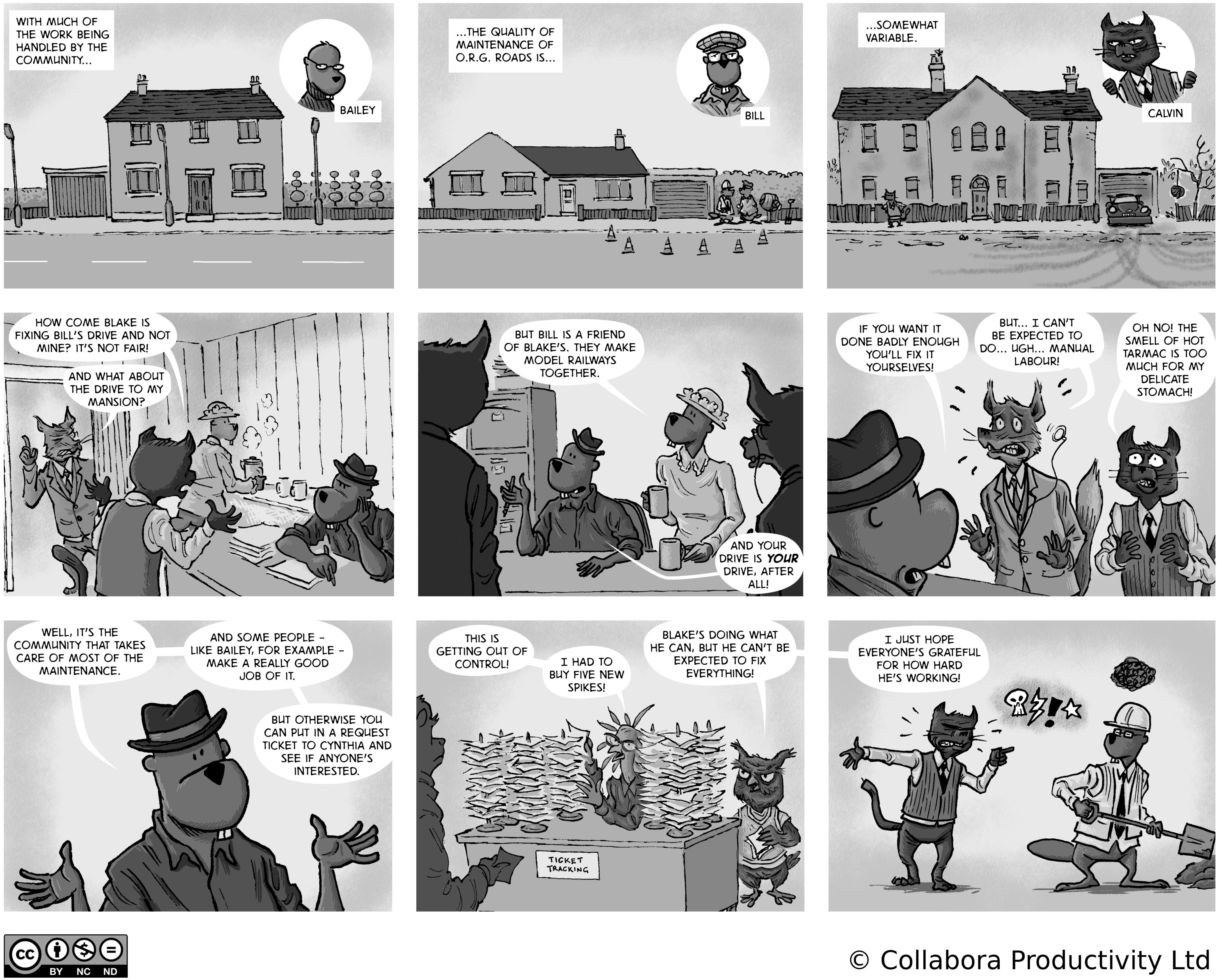 The story, names, characters, and incidents portrayed are fictitious, no identification with actual persons (living or deceased), places, buildings, and products are intended or should be inferred. This work is openly licensed via CC BY-NC-ND 4.0. Deep linking of our images is fine from https://www.collaboraonline.com/torf-imgs/strip043.jpg.